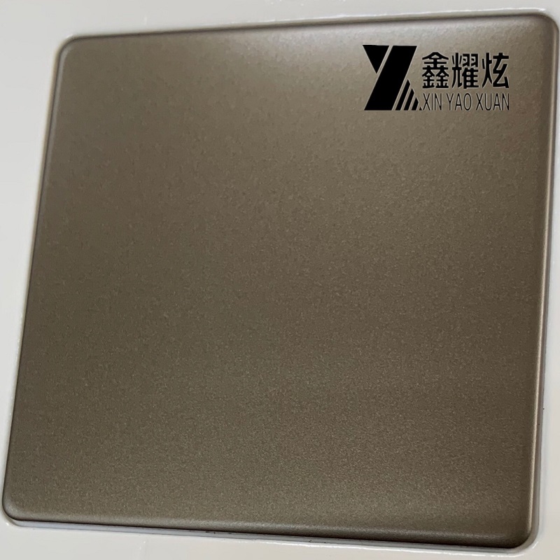 | 產品 Product: | 噴砂青銅金不銹鋼板亮光防指紋處理 Beadblasted Bronze Gold Stainless Steel Panel Bright Finish, ASTM 304 PVD Bronze Gold Color Coating Sandblasted Stainless Steel Decorative Wall Panel |